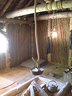 三毛別羆事件(さんけべつひぐまじけん)は、1915年(大正4年)12月9日から12月14日までにかけて、北海道苫前郡苫前村三毛別(現:苫前町三渓)六線沢で発生した熊害事件。エゾヒグマが開拓民の集落を二度にわたって襲撃し、死者7人・負傷者3人を出した後、猟師の山本兵吉により射殺された。 三毛別事件(さんけべつじけん)や六線沢熊害事件(ろくせんさわゆうがいじけん)、苫前羆事件(とままえひぐまじけん)、苫前三毛別事件(とままえさんけべつじけん)とも呼ばれ[1]、日本史上最悪の熊害と評されることもある[2]。 事件の経緯![]() 地名の「三毛別」は、アイヌ語で「川下へ流しだす川」を意味する「サンケ・ペツ」に由来する[3][4][注釈 1]。 クマの出現六線沢と呼ばれていた開拓集落は現在のルペシュペナイ川上流域にある。苫前の中心部から30キロメートルほど南東で、15軒の家があった[9]。 1915年(大正4年)11月初旬、池田富蔵家にヒグマが現れ、軒下のトウキビが被害に遭った。同月20日未明にも再びヒグマが現れ、被害はなかったものの、富蔵はクマの脅威を身近に感じ始め、何か対策を打たなければならないと不安を募らせていた[10]。30日、富蔵はマタギ2人に張り込みを頼んだ。ヒグマが現れたが、傷を負わせたのみで取り逃がした[11]。 事件発生第一の襲撃事件12月9日、太田三郎家に残っていた内縁の妻阿部マユと、養子に迎える予定だった蓮見幹雄(6歳)がヒグマに襲われた。これは一連の襲撃事件のうち、最初の襲撃であった。 三郎は山での作業のため不在だったが、帰宅時に囲炉裏に座っている幹雄を発見した。三郎は、幹雄が寝ているのだと思い近づいてみたところ、喉と側頭部に親指大の穴が開いており、既に息絶えていた[12]。さらにヒグマはマユの体を引きずりながら、土間を通って窓から屋外に出たらしく、窓枠にはマユのものとおぼしき数十本の頭髪が絡みついていた[13] [14]。加害クマを追跡するにはすでにもう遅い時間で、日没が迫る中、住民たちに打つ手はなかった[14]。 ![]() ![]() ![]() 翌日の12月10日9時頃、捜索隊が結成された。あまりにも近い場所からクマが出てきたため、驚いた一行は慌てふためいて銃口を向けたが、手入れが行き届いておらず、発砲できたのは1丁のみであった[15]。 銃声を聞いてヒグマが逃走した後、男たちがヒグマのいた付近を確認すると、トドマツの根元に黒い足袋を履き、ぶどう色の脚絆が絡まる膝下の脚と頭蓋の一部しか残されていないマユの遺体を発見し、収容した[15]。 このヒグマは人間の肉の味を覚えた。マユの遺体を雪に隠そうとしたのは保存食にするための行動であった。 第二の襲撃事件同日夜、太田宅で幹雄とマユの通夜が行われたが、村民はヒグマの襲来に怯え、参列したのは六線沢から3人と三毛別から2人、幹雄の両親とその知人、喪主の太田三郎のあわせて9人だけだった[15]。 20時半ごろ、太田宅にヒグマが乱入してきた。ランプが消え、棺桶が打ち返されて遺体は散らばり、恐怖にかられた参列者たちは梁に上ったり屋外に飛び出したりと、右往左往の大混乱となった[16]。幹雄の父親である蓮見嘉七はいち早く妻のチセを踏み台にして屋根裏の梁に駆け上がり、踏み倒されたチセは参列者の堀口清作に助けられてようやく天井の梁に逃れた。嘉七は死ぬまでチセに頭が上がらなかったという。300 m先の家で食事をしていた50人が駆けつけたが、ヒグマはこの時には姿を消していた。犠牲者が出なかったことに安堵した一同は、太田宅から500 mほど下流にある明景家に退避しようと下流へ向かった[17]。 そのころ明景家には、戸主・明景安太郎(40歳)、その妻・明景ヤヨ(34歳)、長男・力蔵(10歳)、次男・勇次郎(8歳)、長女・ヒサノ(6歳)、三男・金蔵(3歳)、四男・梅吉(1歳)の7人と、事件を通報するため30kmほど離れた苫前村役場や19kmほど離れた古丹別巡査駐在所に向かっていた斉藤石五郎(42歳)[18]の妻で妊婦の斉藤タケ(34歳)、三男・巌(6歳)、四男・春義(3歳)の3人、そして事件のあった太田宅の寄宿人で男手として明景宅に身を寄せていた長松要吉(59歳)の合計11人(タケの胎児を含めると12人)がいた[16]。 (苫前町立郷土資料館) 太田家からヒグマが消えて20分と経たない[16]20時50分ごろ、激しい物音と地響きを立てながら、窓を突き破って黒い塊が侵入してきた。ヤヨはその塊に「誰だ」と呼びかけたが、それはヒグマであった。混乱の中で囲炉裏とランプの火が消え、ヒグマは暗闇の中で人々に次々と襲いかかった[19]。 ヤヨと彼女に背負われていた梅吉はクマに噛まれて負傷するも、クマは逃げる要吉に気を取られたため難を逃れ、外に逃れた。一方で追われた要吉は牙を腰のあたりに受けて重傷を負った[20]。さらにヒグマは居間にいた金蔵と春義を殺害、巌に噛みつき重傷を負わせる。野菜置き場に隠れていたタケは気づいたヒグマによって居間に引きずり出され、「腹破らんでくれ!」「のど喰って殺して!」と胎児の命乞いをしたがやがて意識を失い、上半身から食われて殺